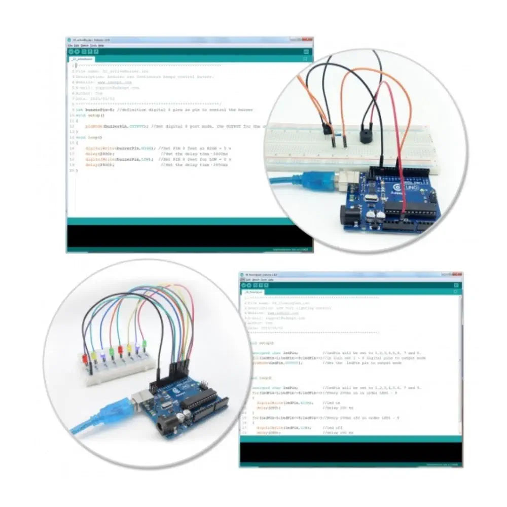 The Adeept Uno Ultimate Starter Kit offers LCD1602, Servo Motor, Relay, Processing and C Code. You will be taken from knowing to utilizing, and be able to do more experiments, get your ideas into real action without the restriction of hardware and software.