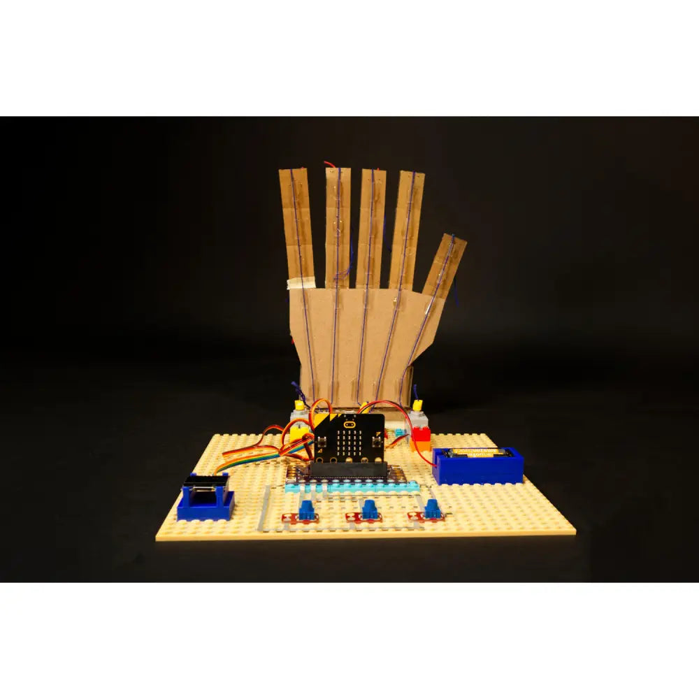 The Bit Board Classroom Set employs a brick-based building environment using Maker Tape conductive tape, eliminating the need for soldering. This feature, combined with the inclusion of over 33 parts such as distance sensors, light sensors, 7-segment displays, and temperature sensors, makes the set both user-friendly and versatile. The packaging is designed for classroom readiness, with heavy-duty plastic containers ensuring durability and ease of use.