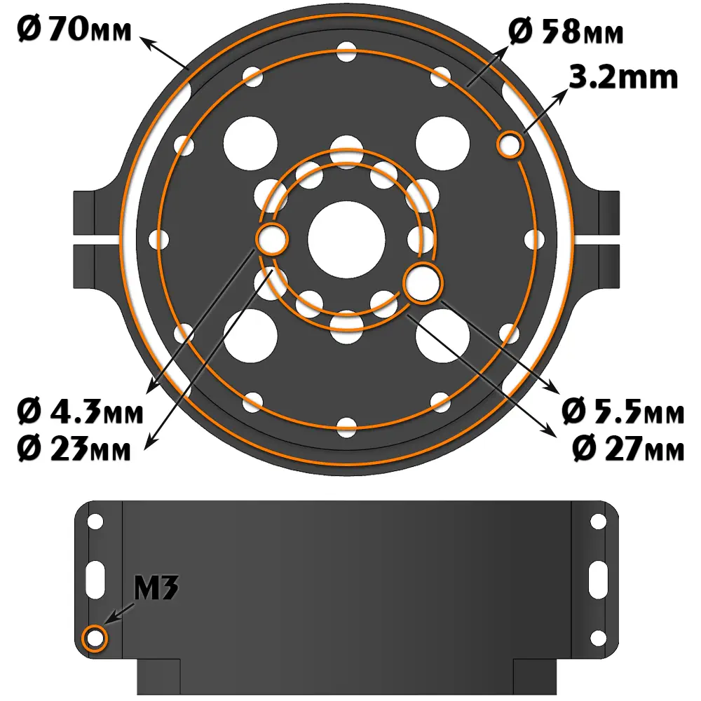 - 1x Lynxmotion SES-PRO Aluminum Clamp for 70mm CF Tubes (SES-P-A-C-70)