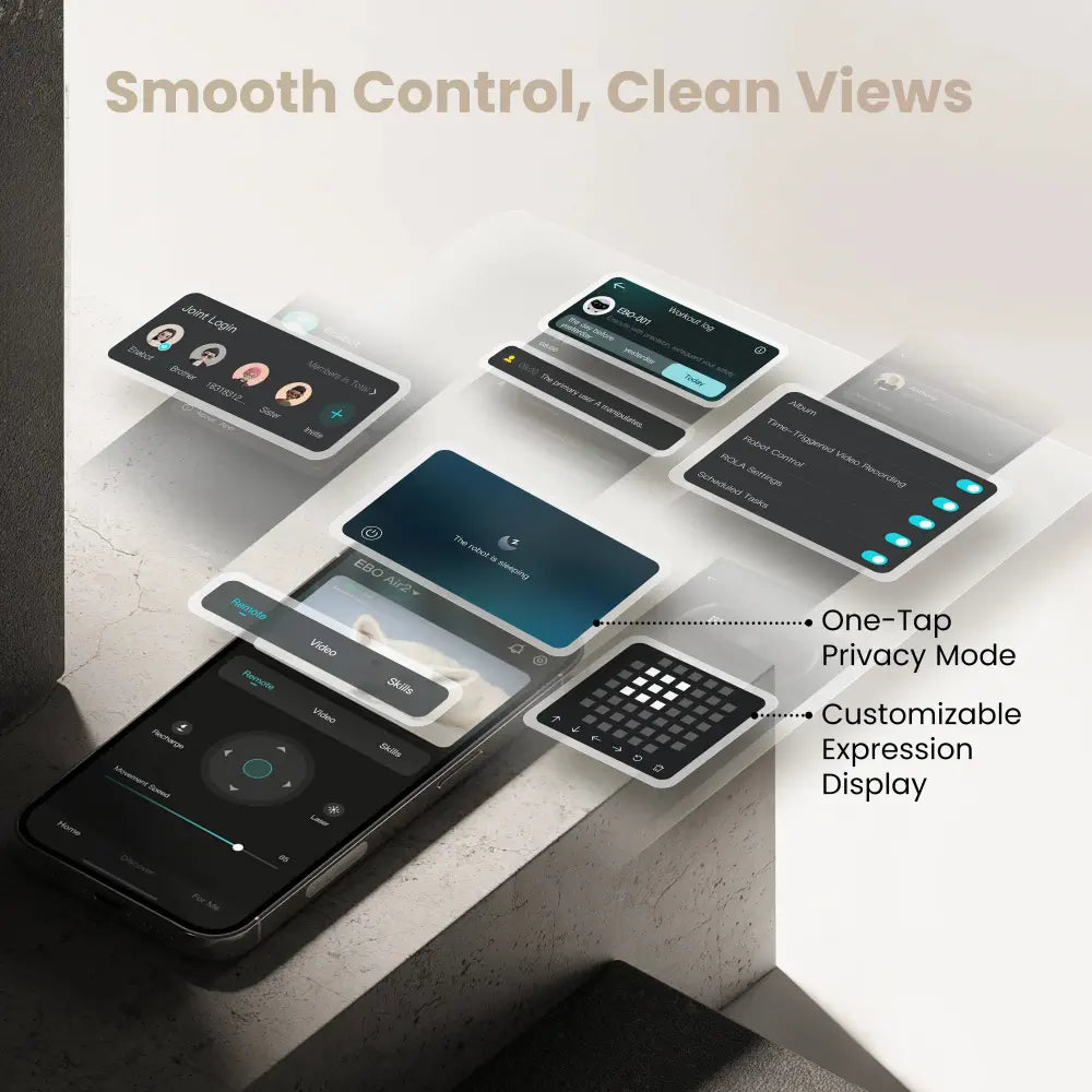 This companion robot is distinguished by its customizable expression display, which adds a personal touch to its interactions. It also includes two-way audio with AI noise cancellation, facilitating clear and effective communication between users and the device. The EBO Air 2 is engineered with a unique tumbler design, ensuring optimal balance and stability during movement.
