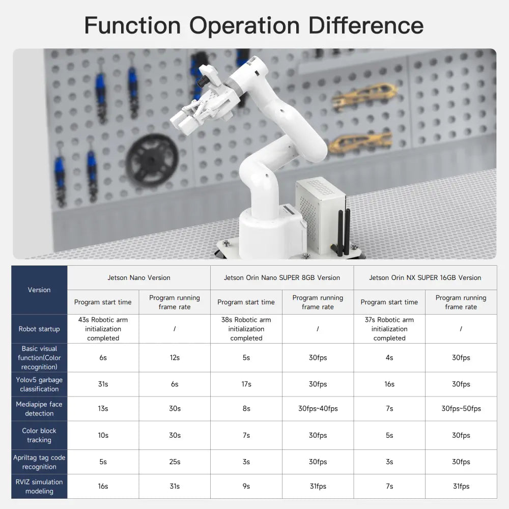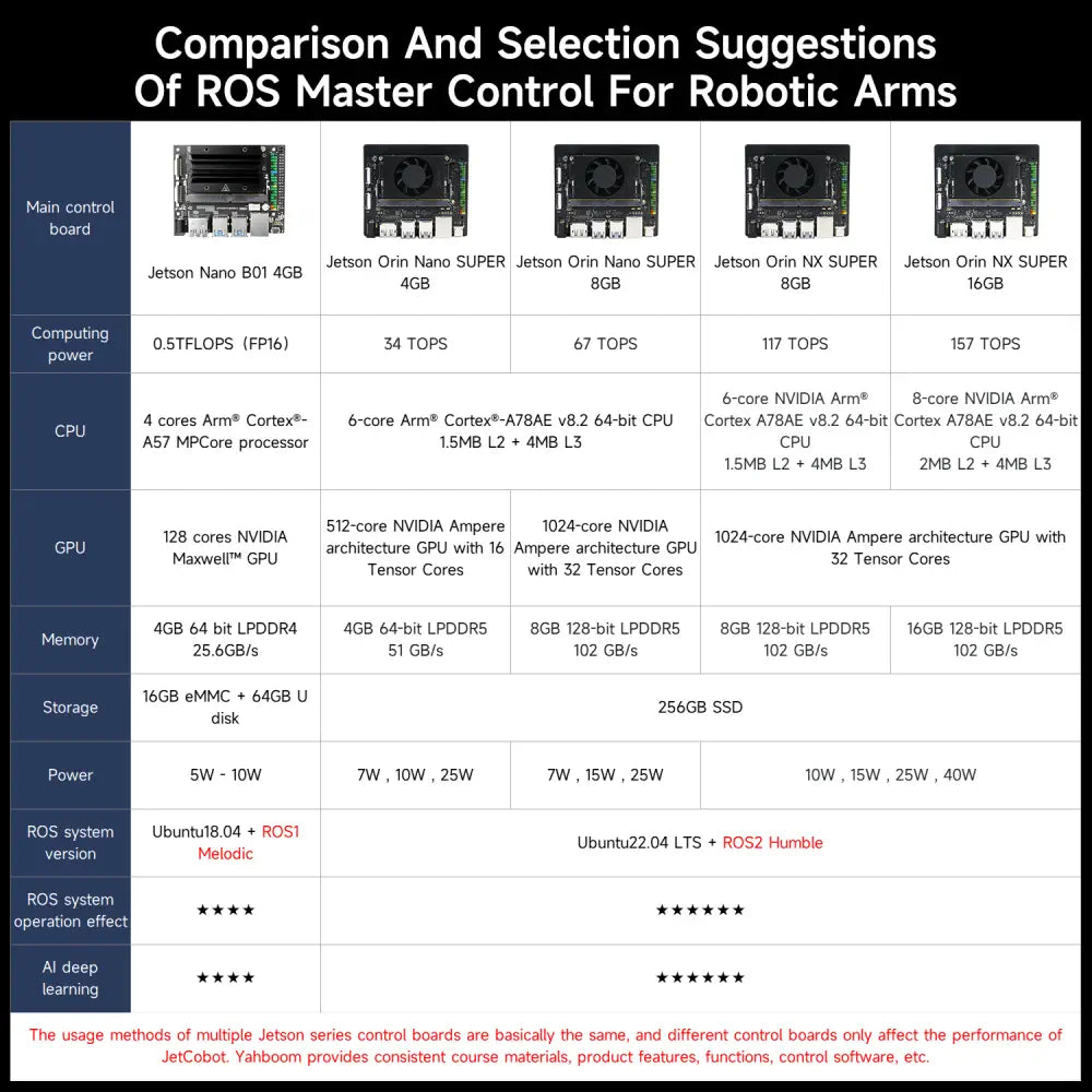 With NVIDIA series development boards as the main control, JetCobot has powerful computing power and AI processing capabilities, which can efficiently process complex vision and control algorithms to ensure real-time response and efficient execution.